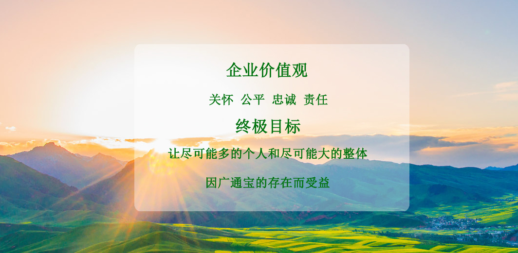 秉承“關(guān)懷、公平、忠誠、責(zé)任”的價(jià)值觀和“讓盡可能多的個(gè)人和盡可能大的整體因廣通的存在而受益”的終極目標(biāo),我們將致力于人類食品、醫(yī)藥健康事業(yè)并誠摯歡迎國內(nèi)外朋友、企業(yè)建立廣泛的經(jīng)濟(jì)、技術(shù)交流與合作,共同締造更加健康、和諧、美好的明天。